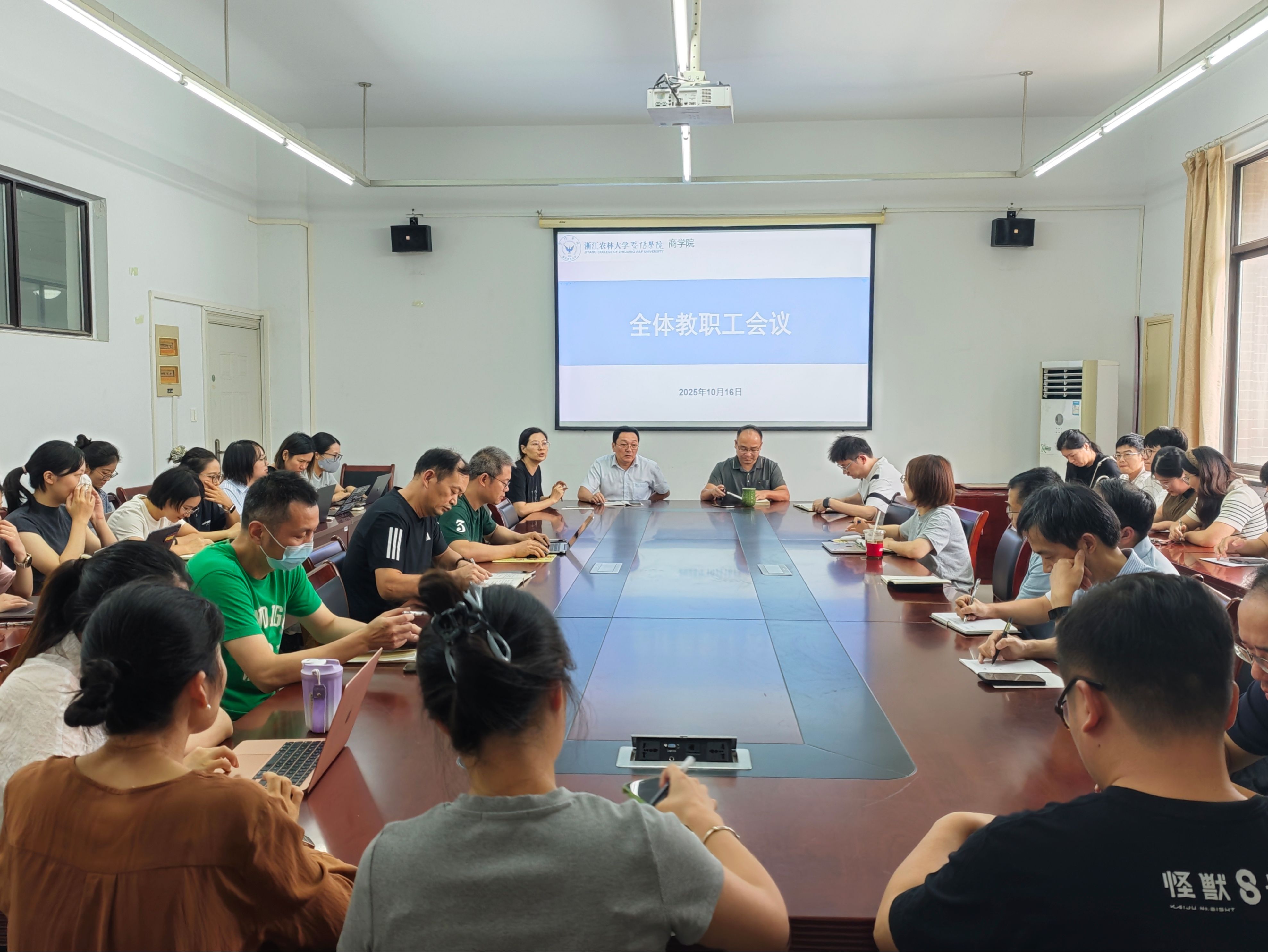 10月16日,商学院召开全体教职工大会,会议围绕强化责任担当、聚焦内涵发展,部署学院近期人才培养、科研创新、和谐稳定等方面的工作,全体教职工参加会议。