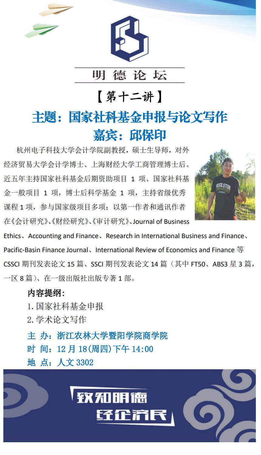 【明德论坛】第十二讲:国家社科基金申报与论文写作